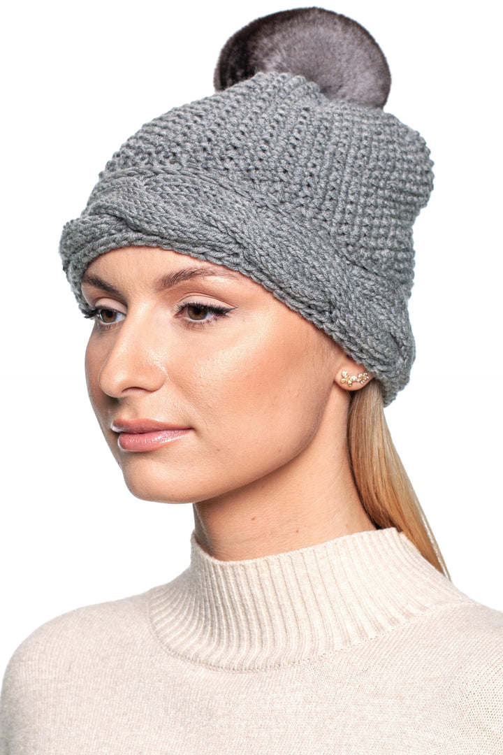 Grey Merino Knit Chinchilla Fur Beanie