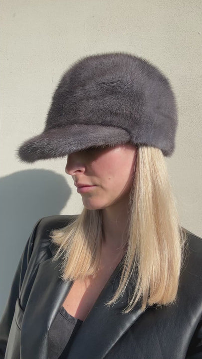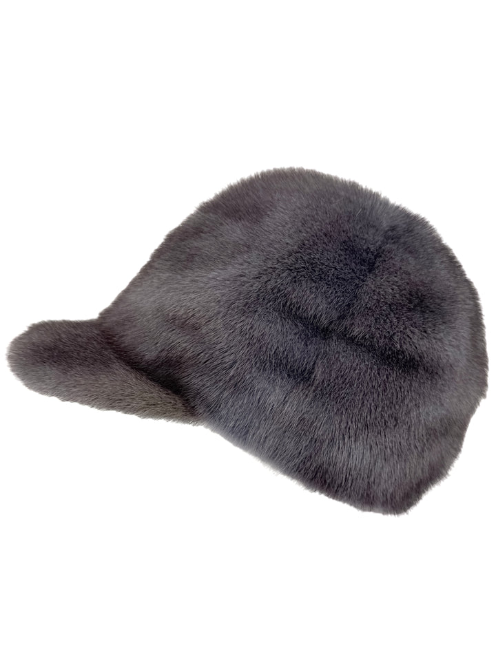 GREY MINK FUR BASEBALL CAP DESCRIPTION: